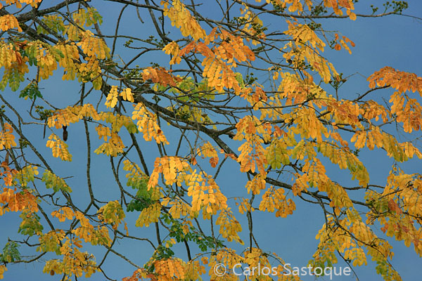 15 of 17 - Yellowing leaves of the Albizia guachapele tree